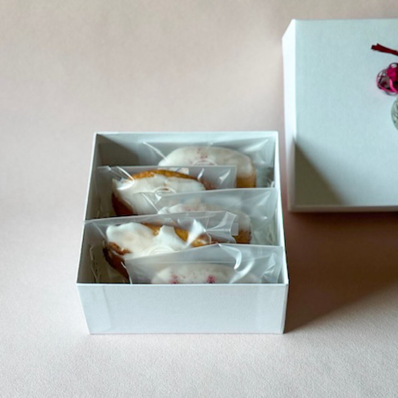 白い箱に、ささやかな飾りを添えて。